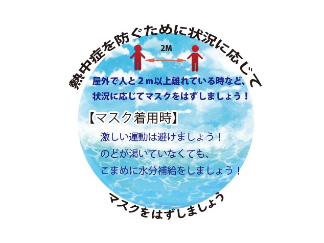 熱中症を防ぐために 状況に応じて マスクをはずしましょう