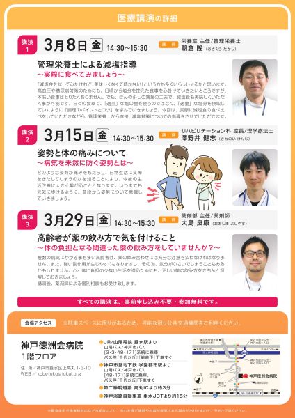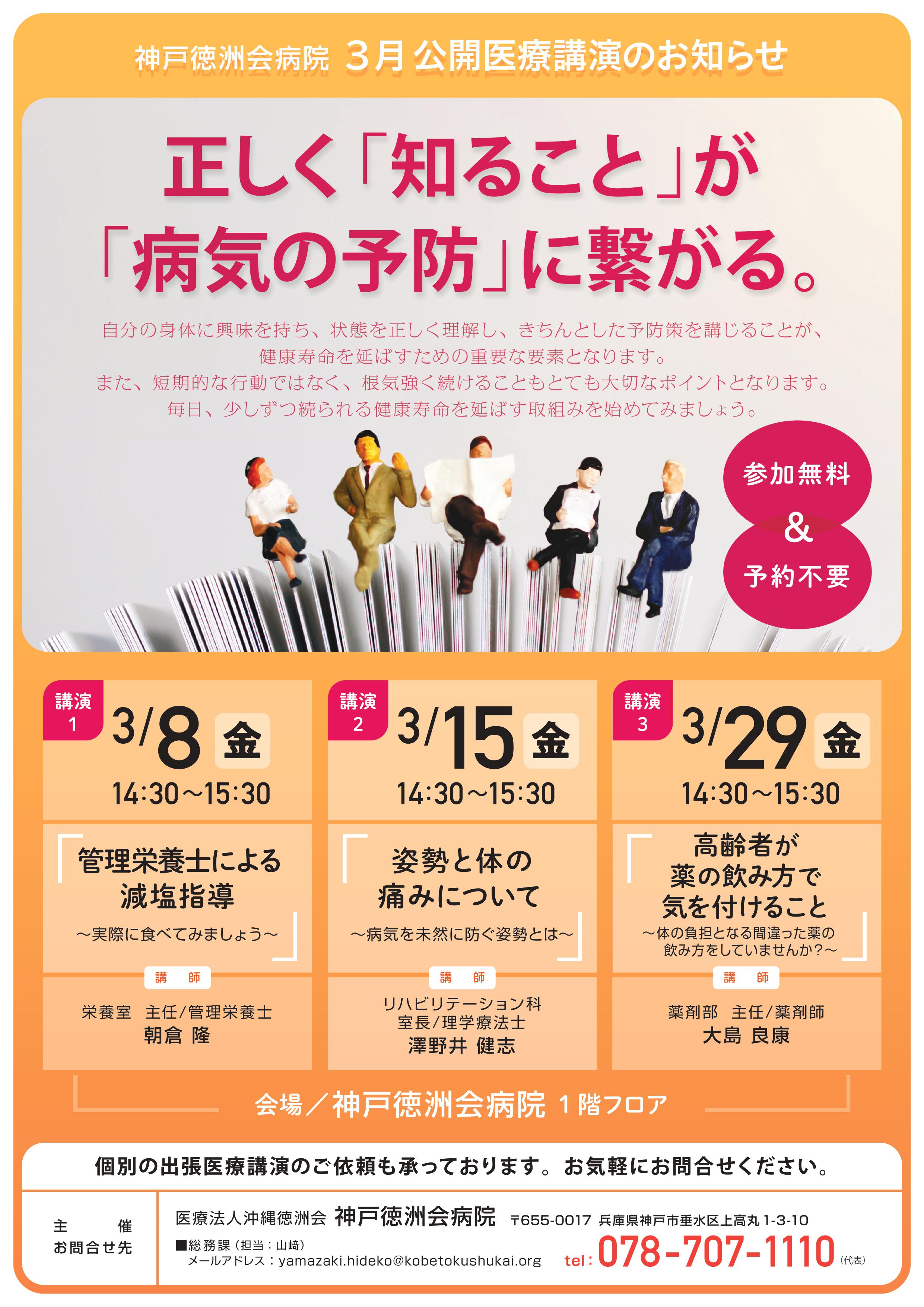 3月の公開医療講演は、当院1階ホールで開催させていただきます。
